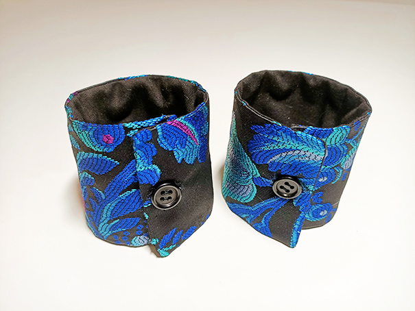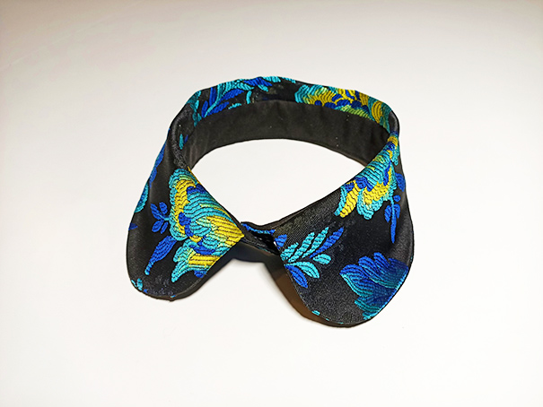 Il colletto e i polsini Blue Flowers in tessuto jacquard con motivo floreale su sfondo nero conferiscono un tocco di raffinatezza anche all’outfit più semplice. Sono l’accessorio perfetto per una blusa, un abito o un maglioncino.