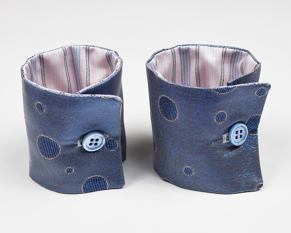Il colletto e i polsini Bubbles in tessuto jacquard sui toni dell’azzurro e fantasia di pois conferiscono un tocco di eleganza anche all’outfit più semplice. Sono l’accessorio perfetto per una blusa, un abito o una t-shirt.